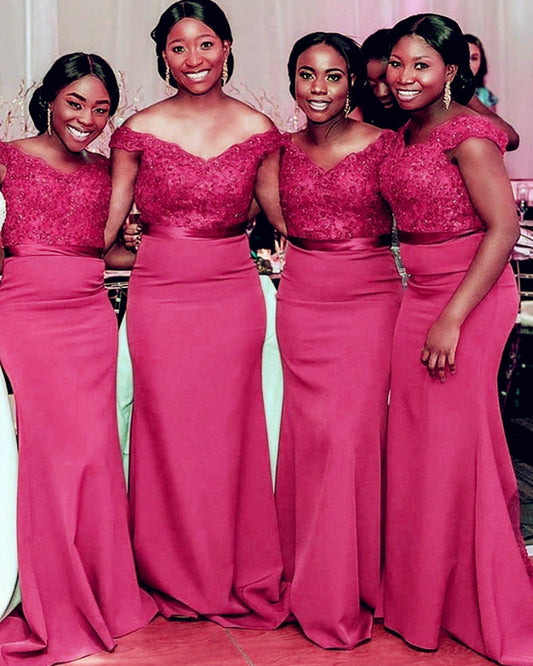 Mermaid Satin Spaghetti Straps Bridesmaid Dresses With Sashes