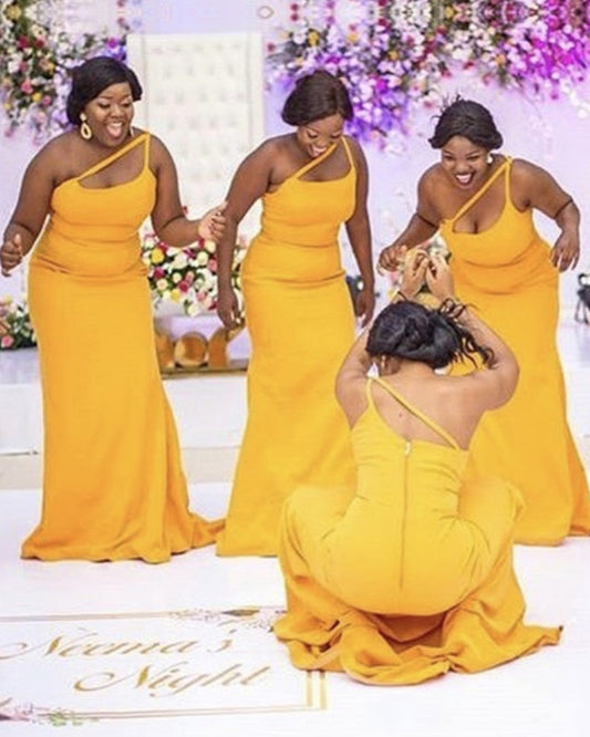 Long Mermaid Satin One Shoulder Bridesmaid Dresses