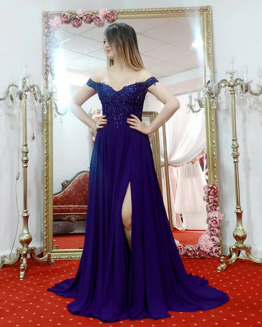 Off The Shoulder Chiffon Bridesmaid Dresses Leg Split