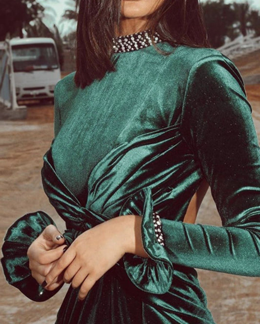 Mermaid Backless Velvet Evening Dress Long Sleeves