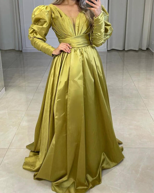 Mermaid Bright Yellow Puffy Sleeve Satin Dress