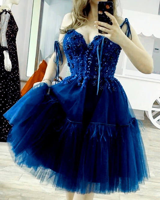 Short Tulle Ball Gown Lace Long Sleeve Dress
