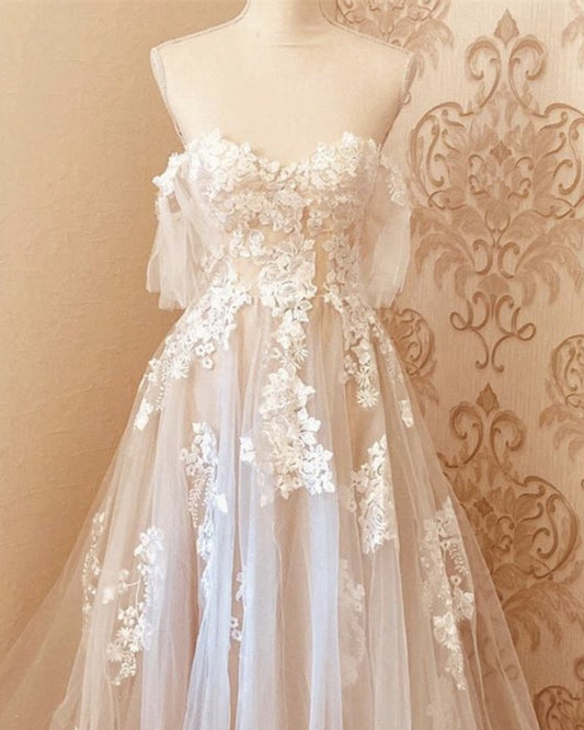 Tulle Boho Wedding Dress Off The Shoulder Lace Appliques