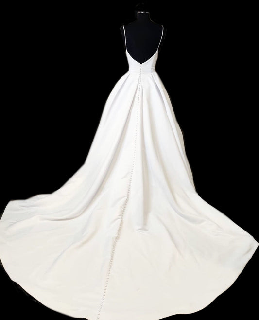 Princess Wedding Dress Satin V Neck Spaghetti Straps