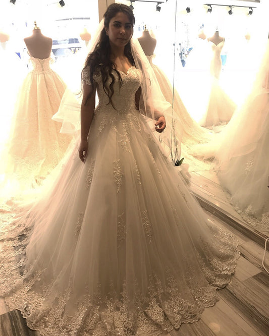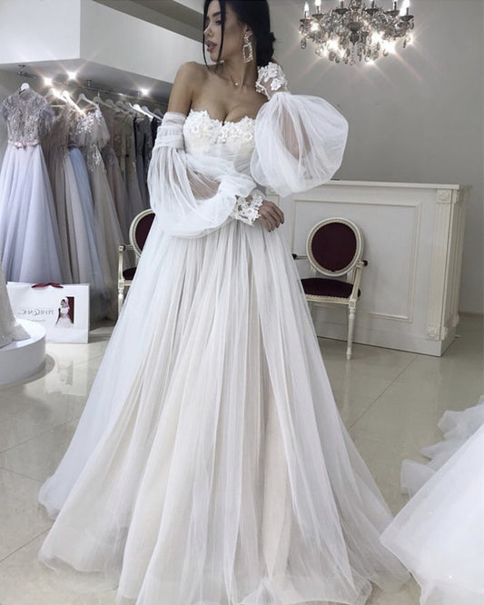 Tulle Wedding Dress Appliques Sweetheart Cold Sleeves