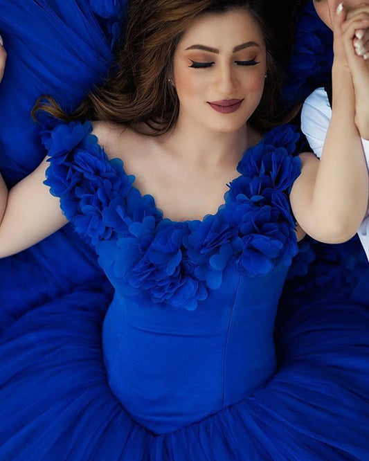 Royal Blue Ball Gown Wedding Dress Flowers Off Shoulder