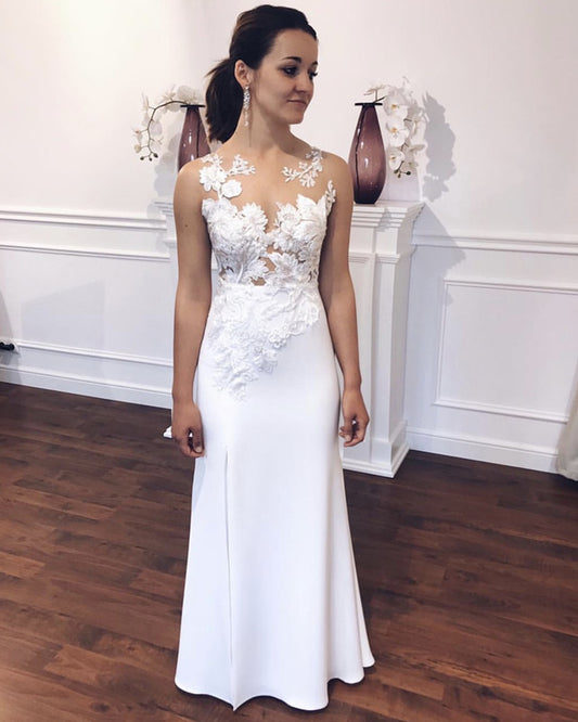 Illusion Neckline Mermaid Wedding Dress Appliques