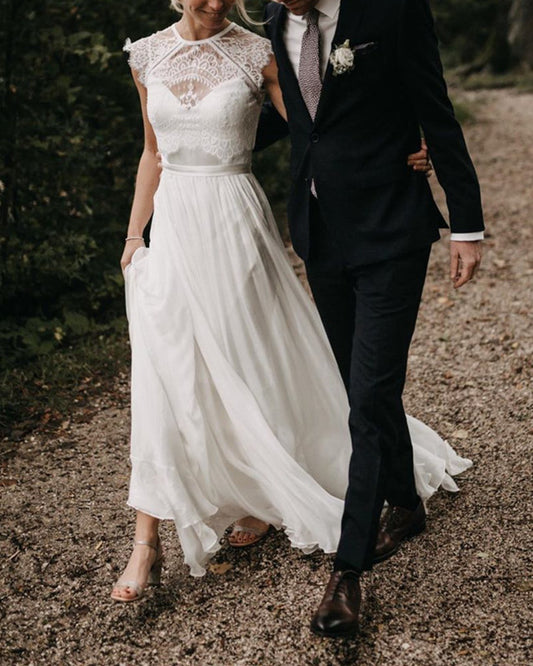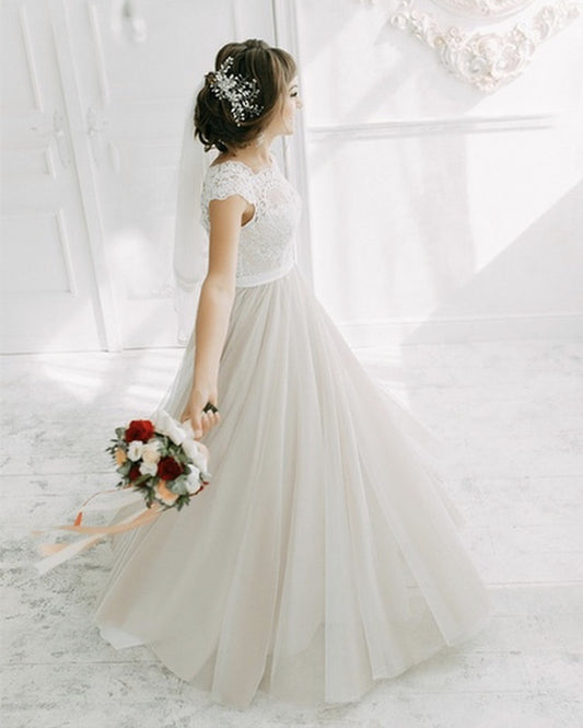 Modest Boho Wedding Dress Lace Cap Sleeves