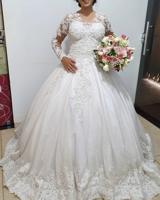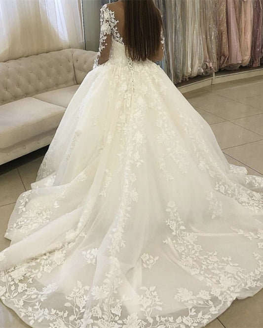 Lace Long Sleeves Wedding Gown Illusion Neck