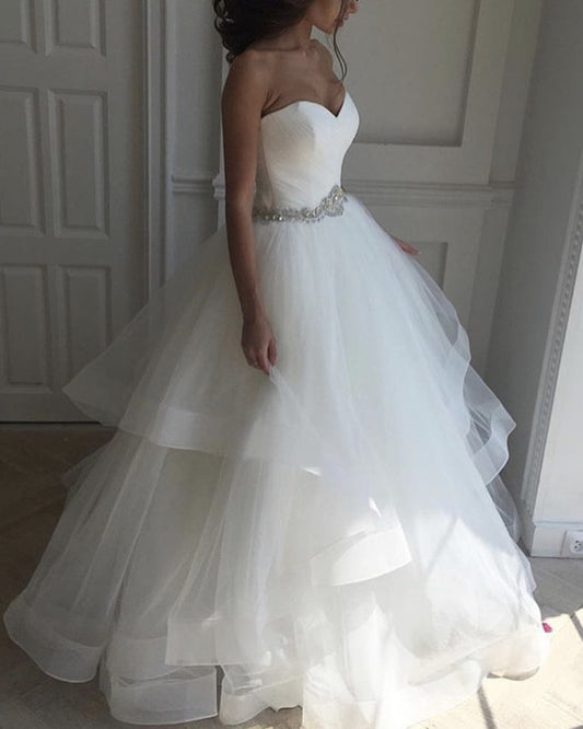 Pleated Sweetheart Ruffles Wedding Dress Ball Gown Crystal Belt