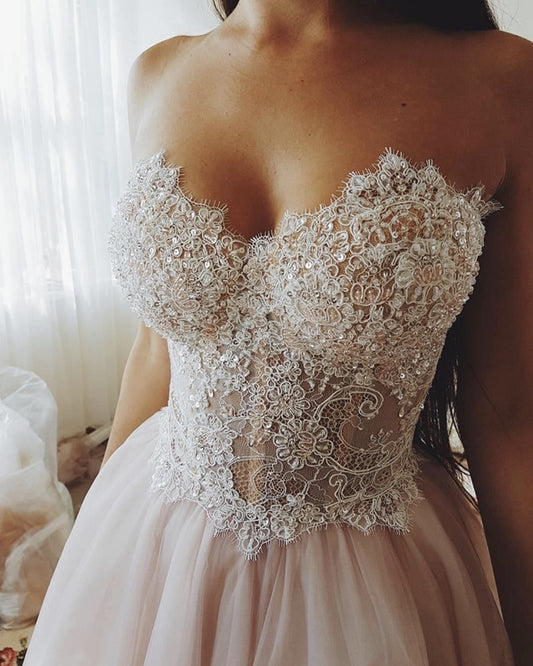 Beach Wedding Dress Lace Sweetheart See Through Corset