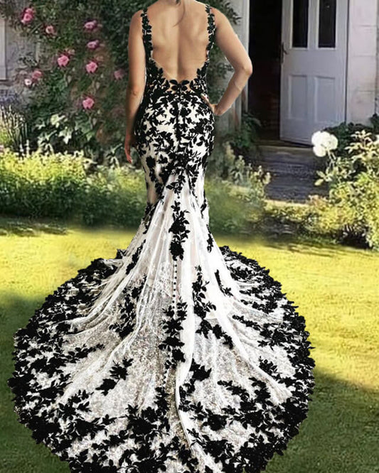 Mermaid Ivory And Black Wedding Dress