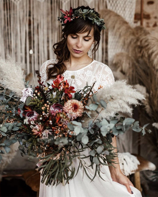 Two Piece Boho Wedding Dress Lace Half Sleeves