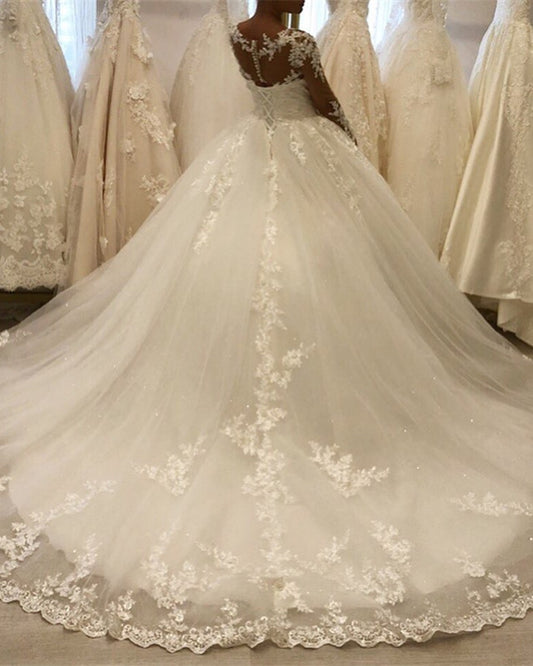 Sheer Sleeves Wedding Dress Ball Gown Appliques