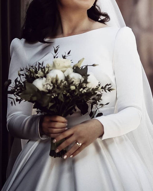 modest style wedding gown will always be a safe choice for your big day. Timeless elegance bridal dress with sleeves,coverage with your shoulder, not see through fabric