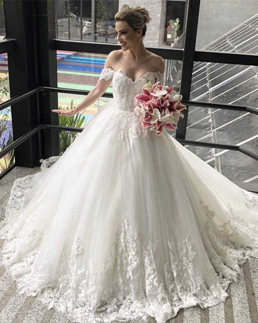 Lace Embroidery Wedding Dress Off Shoulder Ball Gown