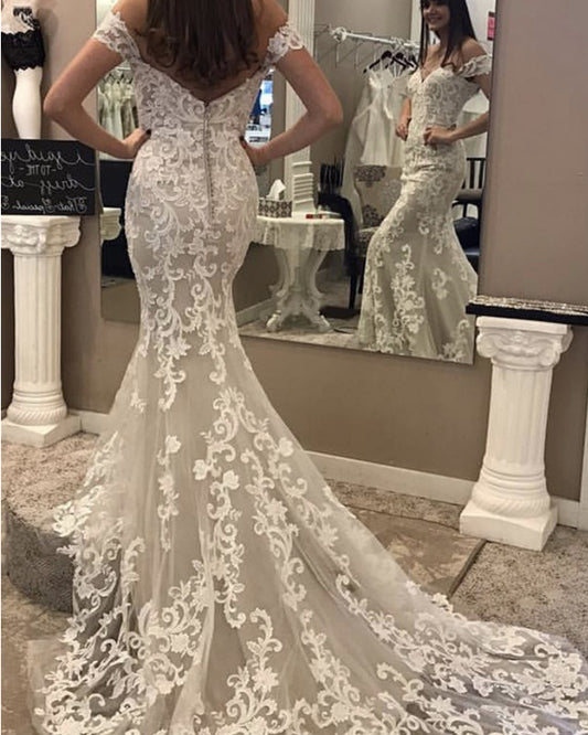 Vintage Lace Wedding Dress Mermaid Off The Shoulder