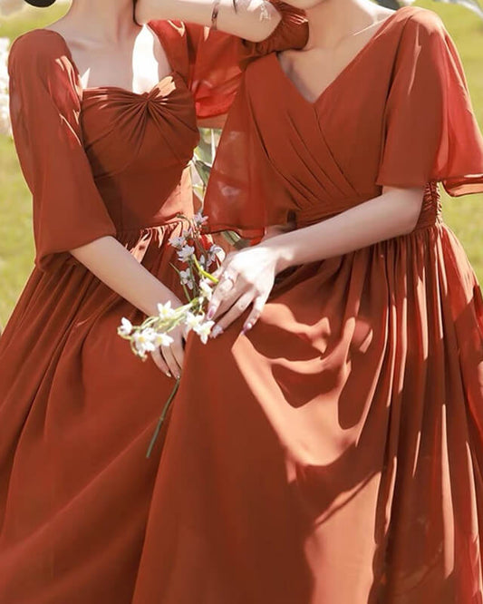 Terracotta Chiffon Bridesmaid Dresses With Sleeve
