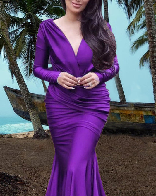 Purple Long Sleeve Mermaid Bridesmaid Dresses