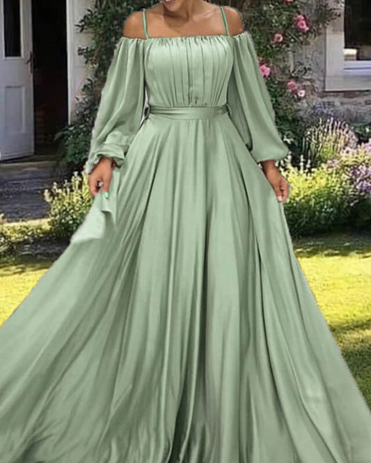 Boho Chic Sage Chiffon Cold Sleeve Dress
