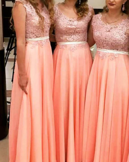 Lace Appliques Cap Sleeves Chiffon Bridesmaid Dresses