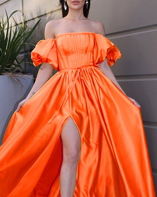 Fall Orange Bridesmaid Dresses Satin Split Off The Shoulder