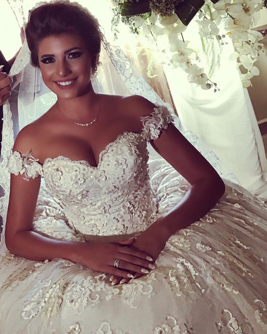 Sweetheart Lace Wedding Dress Off Shoulder Ball Gown