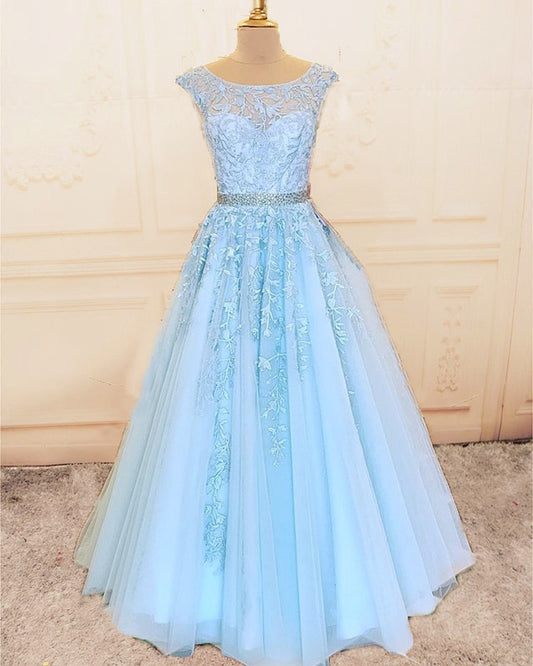 Modest Prom Dresses Cap Sleeves Lace Embroidery