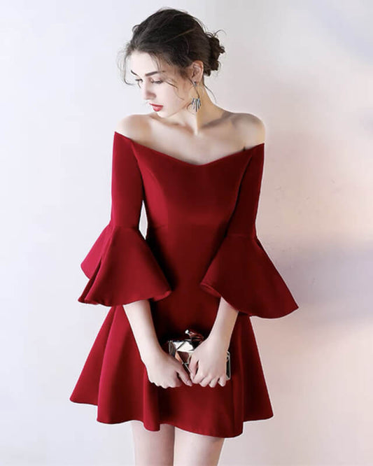 Puffy Sleeve Satin Midi Wedding Dress Wih Pockets