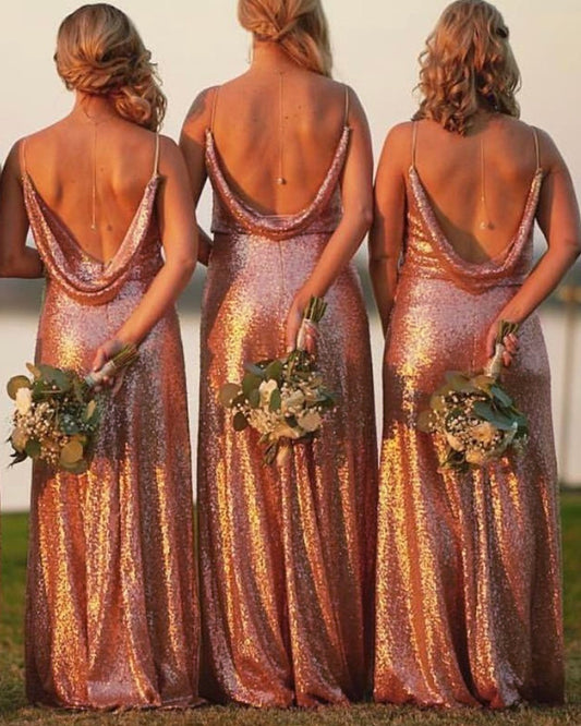 Draped Back Mermaid Sequin Bridesmaid Dresses
