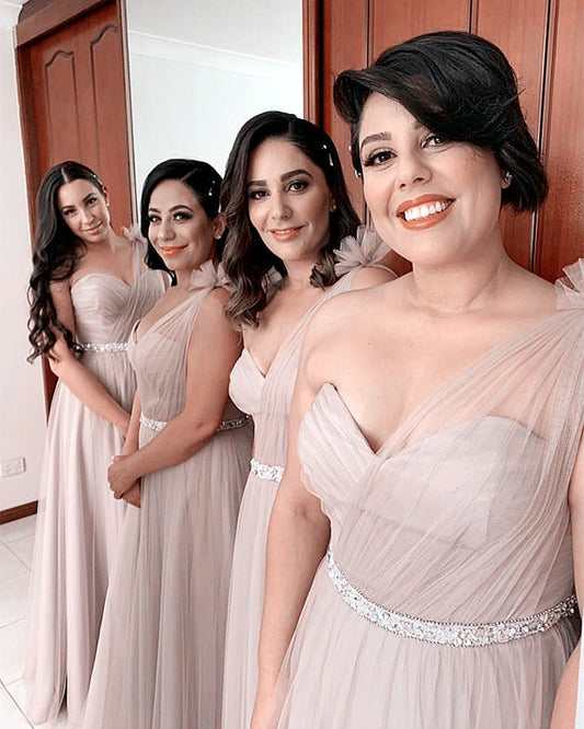 Tulle Bridesmaid Dresses One Shoulder Pleated Sweetheart