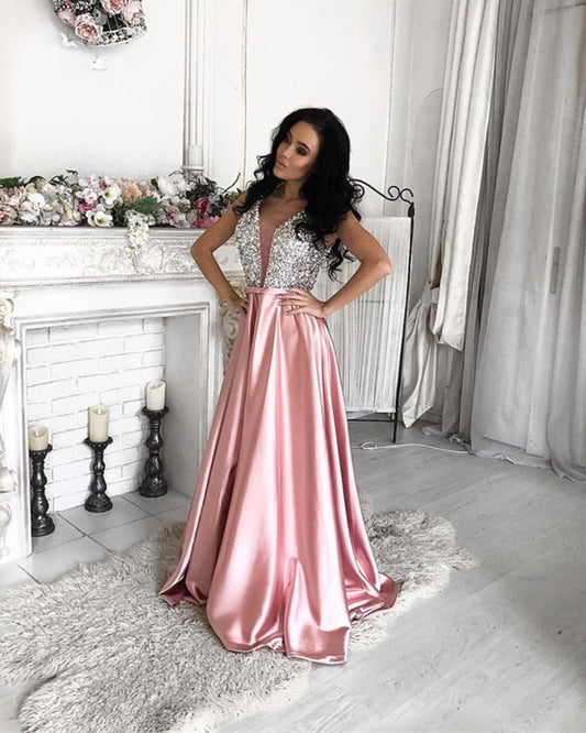 Long Satin Bridesmaid Dresses Strapless Split With Pockets