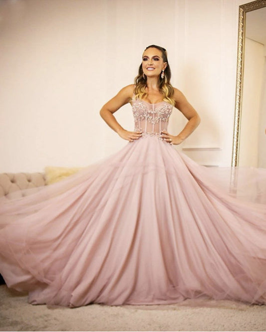 See Through Corset Chiffon Evening Dress Long