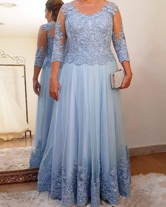 Tulle Mother Of Bride Dress With Lace Sleeves