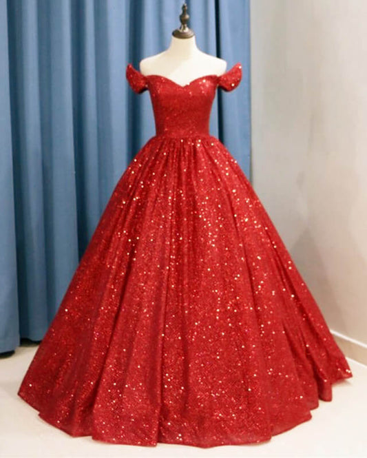 Black Sparkly Ball Gown Off The Shoulder Dress