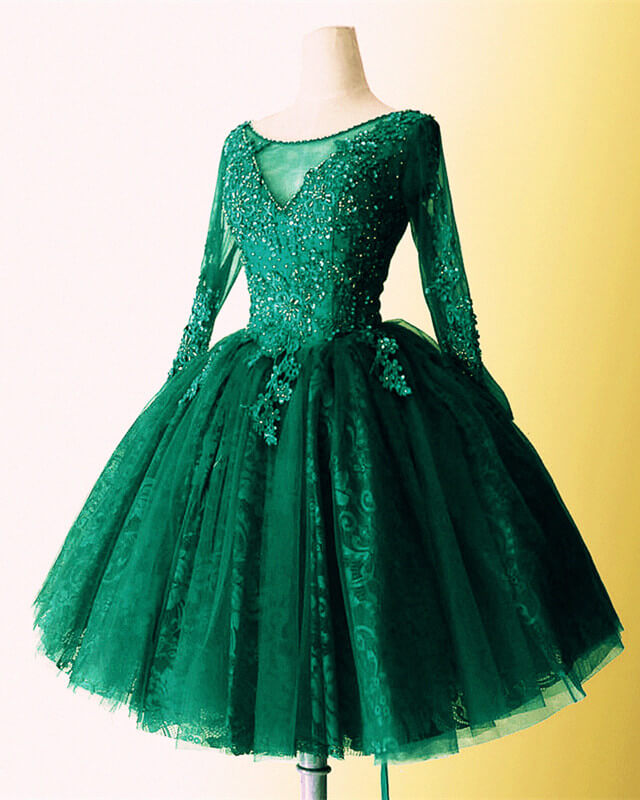 Short Tulle Ball Gown Lace Long Sleeve Dress