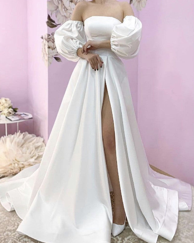 Strapless Satin Split Wedding Dress Removable Sleeves
