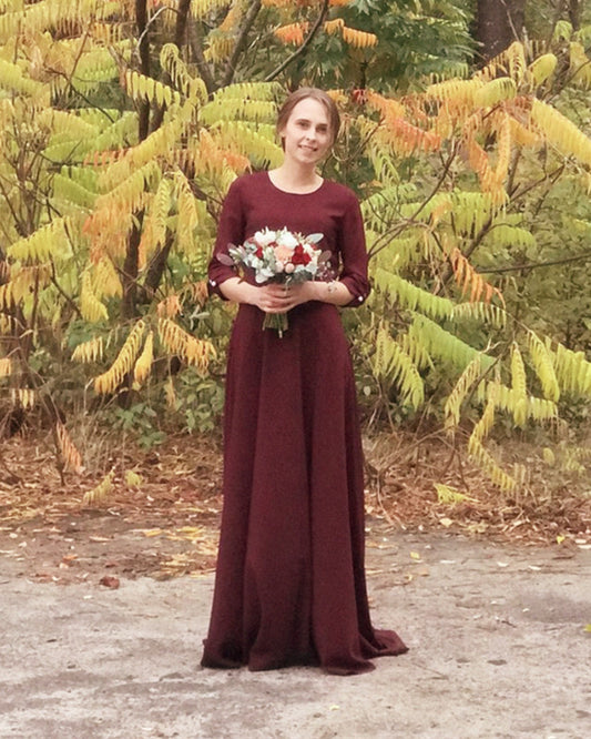 Modest Burgundy Bridesmaid Dresses With 3/4 Sleeves