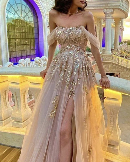 Tulle Corset Off The Shoulder Split Dresses Sequins Lace