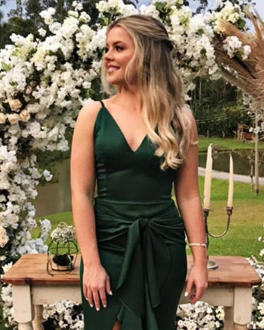 Mermaid Dark Green Satin Bow Sashes Dress