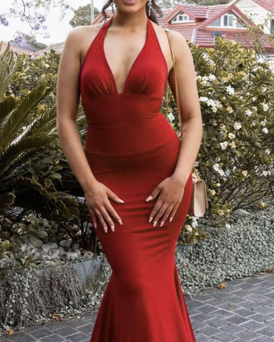Mermaid Burnt Orange Halter Bridesmaid Dresses