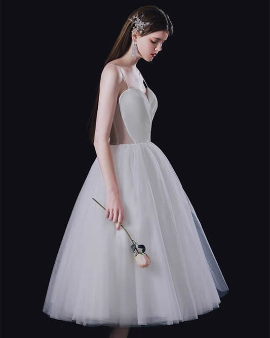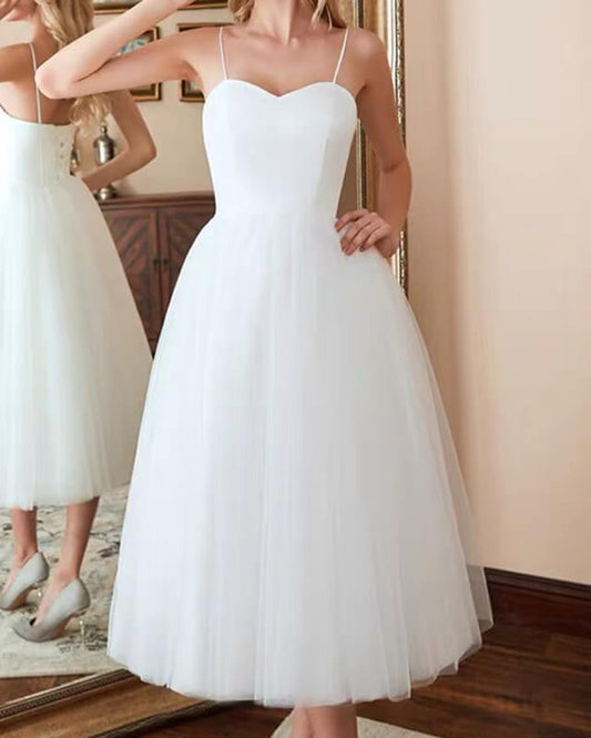 White A-line Sweetheart Tea Length Dress