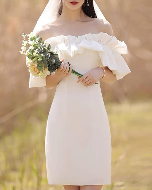 White Off The Shoulder Ruffles Neckline Dress