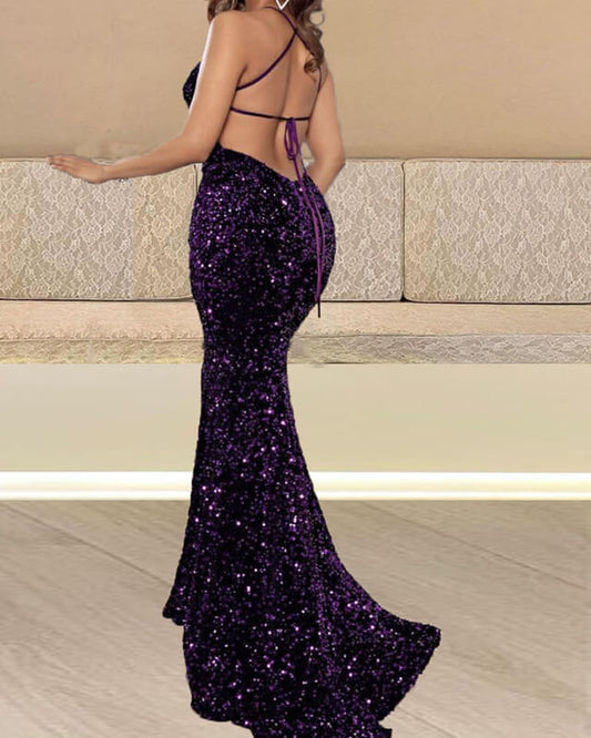 Mermaid Purple Sequin Dress V-neck Cross BackPrix habituel $179.99 USDPrix habituelPrix unitaire par-