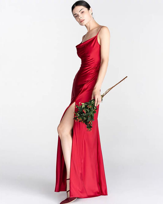 Sexy Long Prom Dresses Ruched Neck Side Split