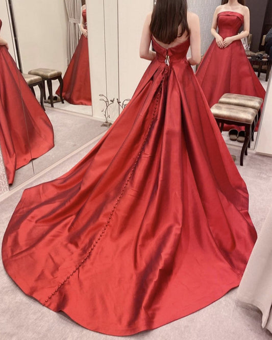 Strapless Ball Gown Satin Dresses Sweep Train