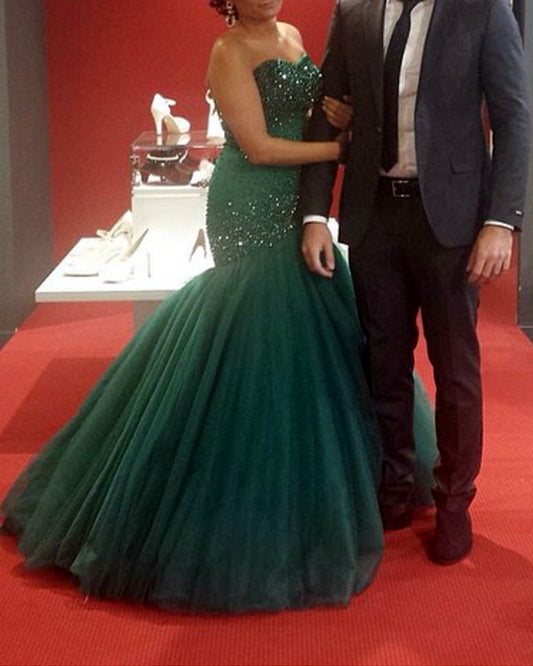 Mermaid Sweetheart Prom Dresses Tulle Crystal Beaded