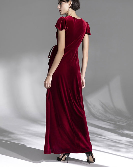 Velvet Cap Sleeves Front Slit Bridesmaid Dresses