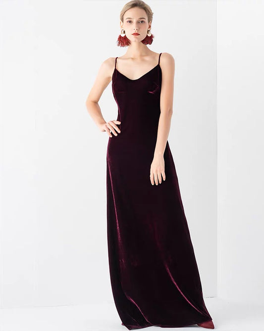 Velvet Bridesmaid Dresses Floor Length Adjustable Straps