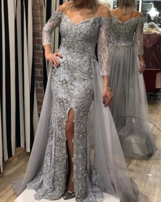 Lace Mermaid Evening Dress Removable Train Off The Shoulder